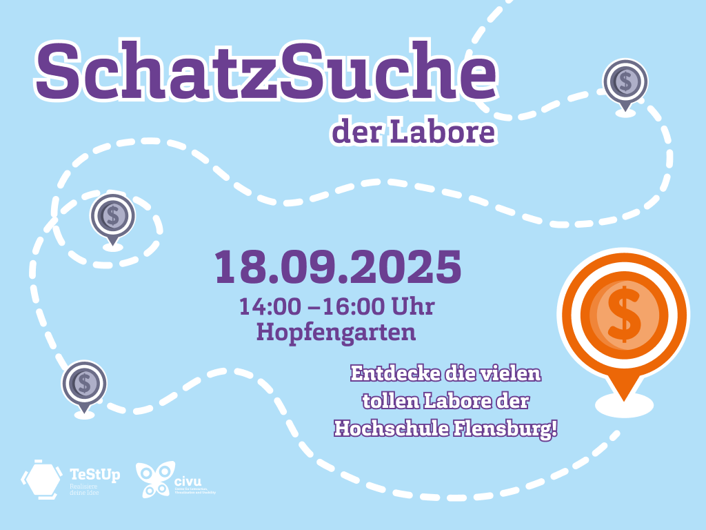 Kommt zum Hopfengarten schnappt euch andere Studierende und schaut euch die Labore in beliebiger Reihenfolge an. Dabei könnt ihr in der SchatzSuche App auch digitale Punkte sammeln, die ihr anschließend gegen kostenlose Getränke eintauschen könnt.